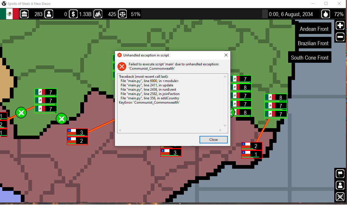 I think i broke your game with my country "Mexico" because i destroy every faction in the world and conquest every country in he before this error jump in my face xd (note:good game 10/10, gameplay 9/10 hard in the start, Grafics 8/10 simples but entertaining, music 9/10) you are building a good game continue whit this plis